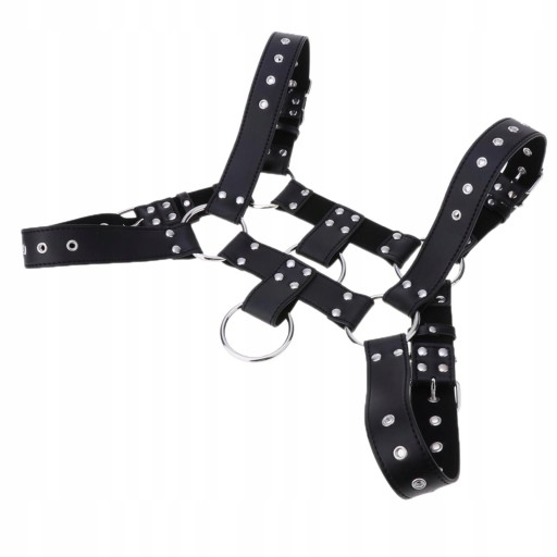 Męska skórzana uprząż na klatkę piersiową, metalowe ćwieki i pierścienie, regulowane klamry, rozmiar pasuje do większości