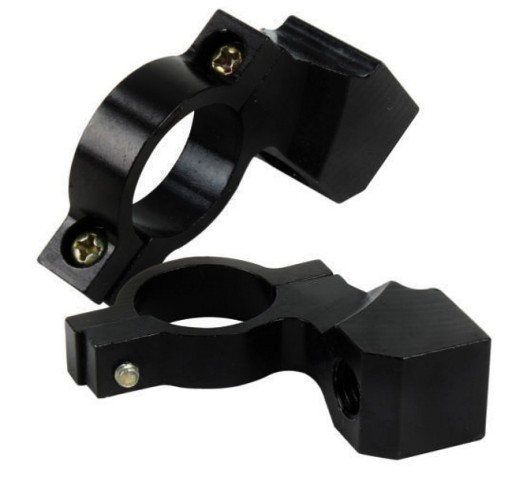Uchwyty mają zastosowanie jako mocowania lusterek bocznych na kierownicy motocykla (i każdego innego jednośladu).