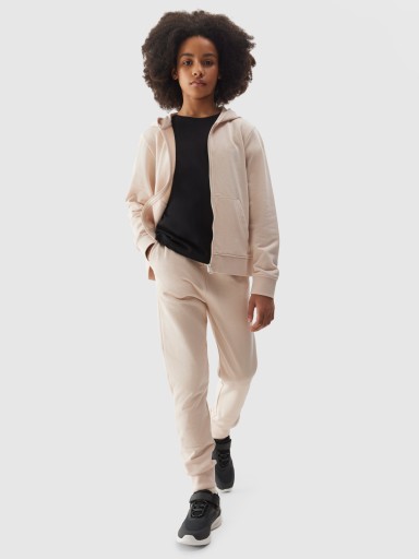 Dresy 4F dla dziewczyny wykonane z dzianiny o średniej gramaturze 260 gsm, która sprawia, że są one miękkie oraz bardziej przewiewne.