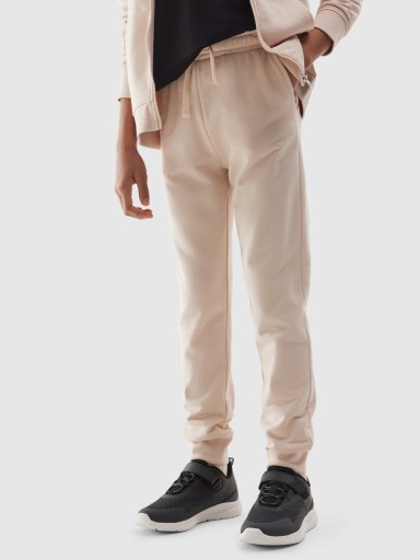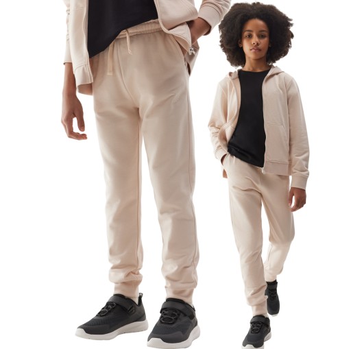 Spodnie dresowe dziewczęce idealnie sprawdzą się jako element zarówno casualowych, jak i sportowych stylizacji na co dzień. Posiadają krój regular, który wygodnie dopasowuje się do sylwetki oraz zwężane nogawki zakończone elastycznym ściągaczem.