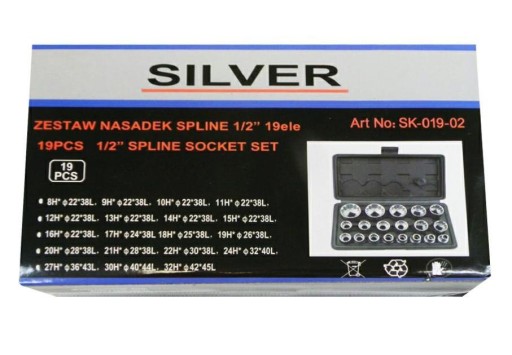 ZESTAW NASADEK SPLINE 1/2" W ROZMIARACH 8-32