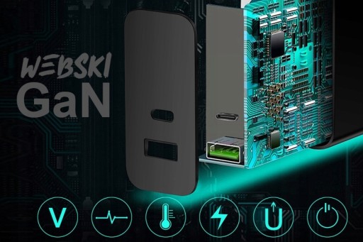 ✅ System GaN -technologia, wykorzystująca azotek galu do zwiększenia szybkości, wydajności urządzeń oraz zminimalizowania konstrukcji urządzenia.