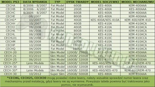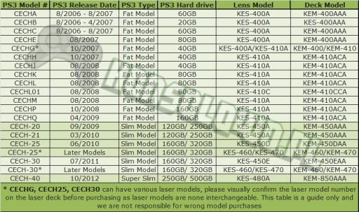 - Sony PlayStation 3 80GB: CECHK, CECHL, CECHM