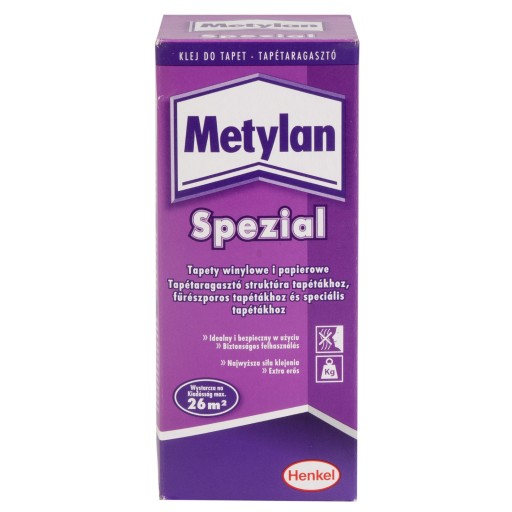 Metylan Spezial to klej do tapet winylowych, grubych i ciężkich tapet papierowych, tłoczonych winylowych oraz tłoczonych papierowych na bazie wysokowartościowej metylocelulozy z dodatkiem sztucznych żywic, odporny na działanie wapna i cementu, nadaje się do stosowania na świeżym i suchym tynku.