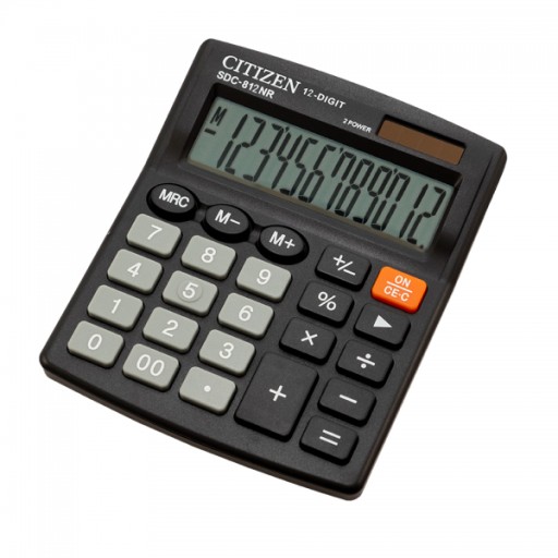 CITIZEN KALKULATOR BIUROWY SDC-812NR, 12-CYFROWY, 127X105MM, CZARNY