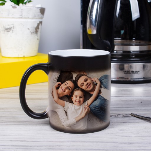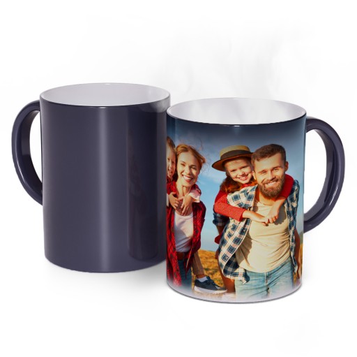 Kubek zmienia kolor pod wpływem temperatury. Po wlaniu gorącego napoju jego powłoka zmienia kolor odsłaniając nadruk.