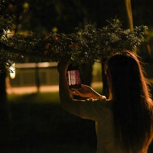 Lampion LED lampa solarna zasilana energią słoneczną. Delikatne ciepłe światło, imitujące ruchomy płomień.