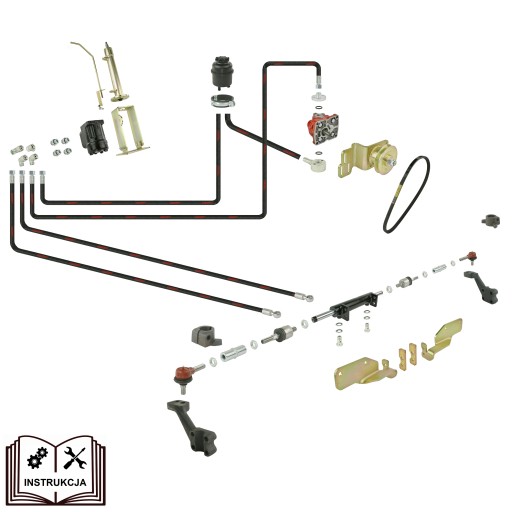 Montaż polega na wymontowaniu starych i zamontowaniu w ich miejsce nowych części z zestawu. Nie trzeba dokupować dodatkowych części, nie trzeba w żaden sposób na trwałe przerabiać ciągnika.