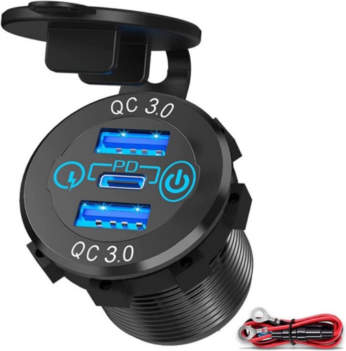 МОЩНОЕ АВТОМОБИЛЬНОЕ ЗАРЯДНОЕ УСТРОЙСТВО USB TYPE C МОНТАЖНЫЕ РАЗЪЕМЫ 2X QC 3.0 PD