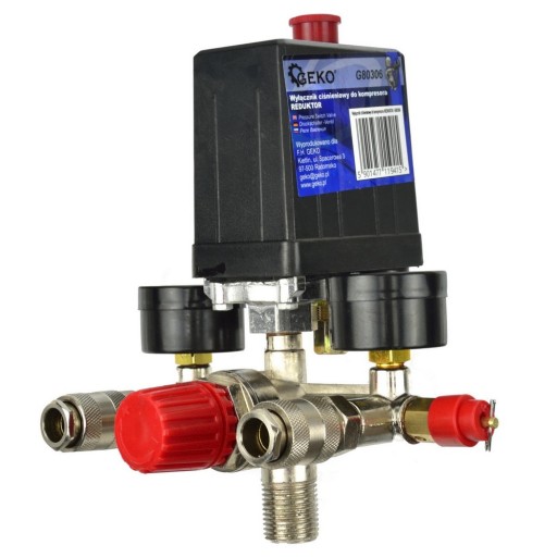 Wyłącznik/reduktor ciśnieniowy presostat 230V. Pasuje do większości kompresorów dostępnych na polskim rynku.