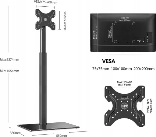 Nadaje się do większości telewizorów plazmowych LED LCD o przekątnej 19–42 cali. VESA: 75x75, 100x100, 200x100, 200x200 mm. Mieści telewizor 35 kg.