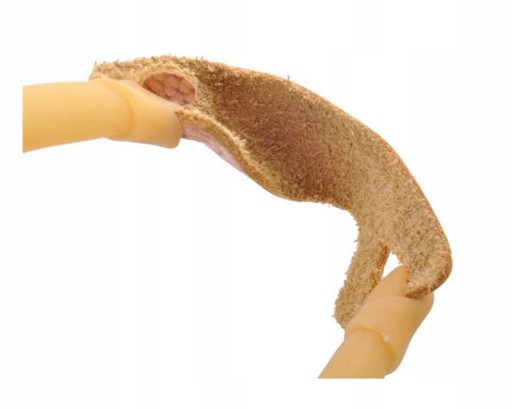 - STELAŻ (widełki) – w miejscu naciągania znajduje się specjalnie wzmocniony, skóropodobny, chropowaty materiał, który zapobiega wyślizgnięciu się gumy z palców podczas naciągania.