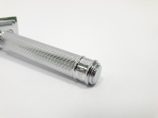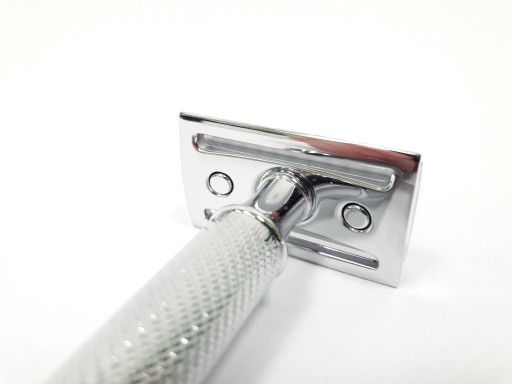 Uchwyt maszynki wykonany z chromowanego mosiądzu, metalowego stopu.