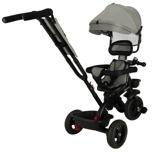 W zależności od waszych sił i potrzeb rower trójkołowy możesz pchać za wygodną, szeroką rączkę, która pozwala nawet na skręcanie przednim kołem, aby ruch był jak najlżejszy, lub Twoje dziecko może samodzielnie jechać, korzystając z pedałów zamontowanych na przednim kole!