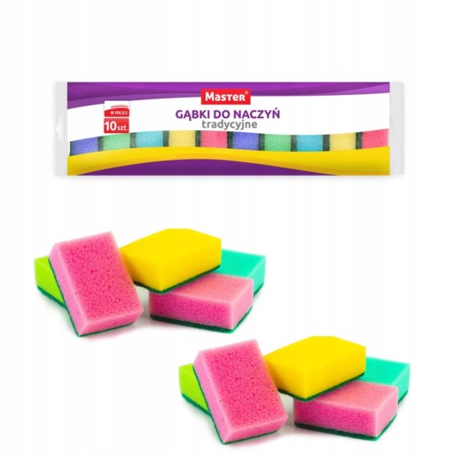 GĄBKI DO MYCIA NACZYŃ 10 SZT MOCNE DUŻE MASTER