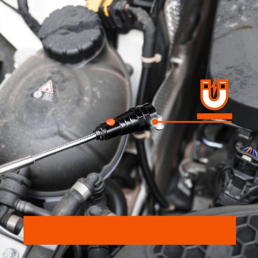 🧲 【Magnetyczny podnośnik z diodami LED】 Latarka z podnośnikiem magnetycznym jest wyposażona w 3 diody LED o wysokiej jasności, aby oświetlić ciemne, wąskie miejsca i podnosić metalowe przedmioty, takie jak śruby, narzędzia, monety. 4 x baterie guzikowe LR44 są dostarczane w zestawie.