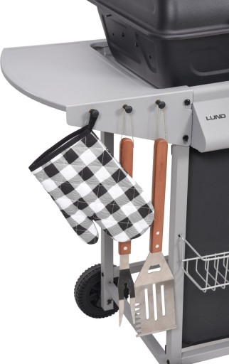 Każda z półek posiada cztery wieszaki. Akcesoria niezbędne do grillowania będą dzięki temu zawsze pod ręką.