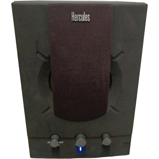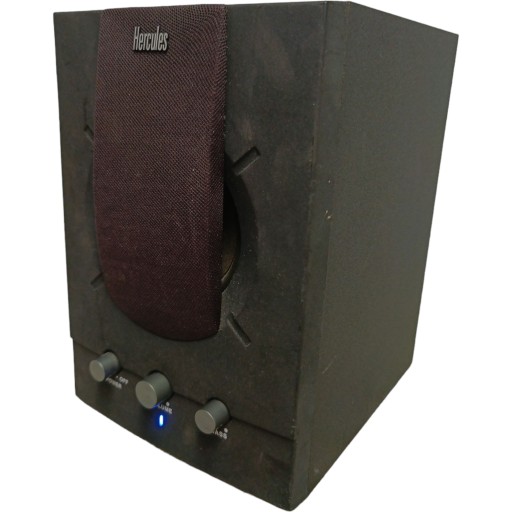 Subwoofer aktywny Herkules model XPS 210 o mocy maksymalnej 8 w. Subwoofer jest sprawny. Wszystko pracuje, jak należy. Jest to dobrej klasy sprzęt tego producenta. Subwoofer jest używany i nosi normalne ślady użytkowania. Nieco porysowana jest obudowa. Wymiary subwoofera to: wysokość 24,5 cm szerokość 17 cm głębokość 19,5 cm. Zapraszam do zakupu. Cena 58 zł.