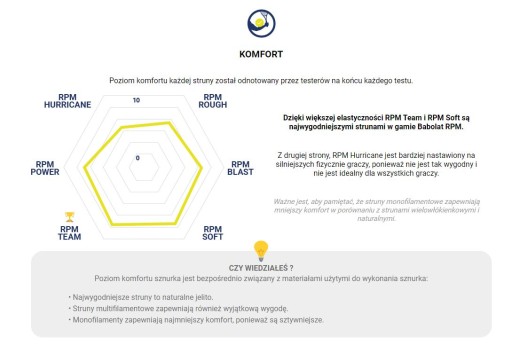 Efekt? RPM Soft jest bardziej wytrzymały niż naciąg wielowłóknisty i bardziej komfortowy niż poliestrowy.