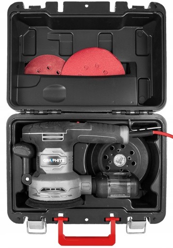 Szlifierka mimośrodowa 450 W, tarcza 125/150 mm, walizka 59G349 marki GRAPHITE to urządzenie posiadające stopę o parametrach 125/150 mm oraz charakteryzujące się mocą 450 W.
