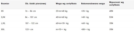 Zgodność z normą: PNE-EN ISO 12402-05:2007.