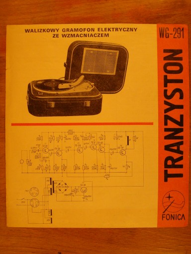 Skrócona instrukcja obsługi WG-291 Tranzyston , z wykazem części i schematem . Rok 1956 , Format 17x 19 cm . 2 strony . Likwidacja największej w Polsce kolekcji Fonica