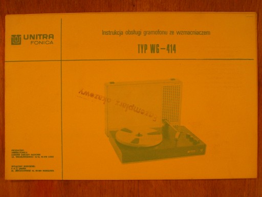 Instrukcja obsługi WG-414 gramofonu ze wzmacniaczem + schemat . Rok 1977 , Format 21 x 14 cm . 8 stron . Likwidacja największej w Polsce kolekcji Fonica