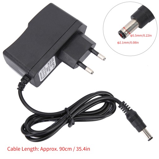 2. Konstrukcja z końcówką ujemną (-), złącze baryłkowe 5,5 mm x 2,1 mm.