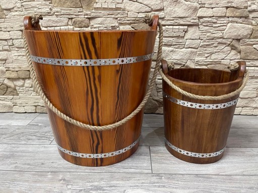 Na zdjęciu głównym wiadro pomalowane lakierobejcą vidaron w kolorze Teak Naturalny .