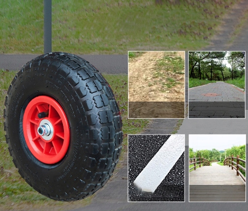 - Pojazd posiada ogromne, pompowane opony - które zostały osadzone na kołach wyposażonych w łożyska kulkowe (zwiększa to płynność podczas jazdy).