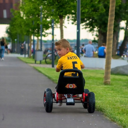 - Gokart napędzany jest siłą mięśni naszego malucha - pomogą mu w tym antypoślizgowe pedały oraz niezwykle wytrzymały naciąg łańcuchowy.