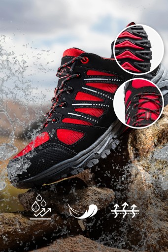 TREKKINGOWE BUTY SPORTOWE SOFTSHELL CZERWONE SZNUROWANE KOMFORTOWE
