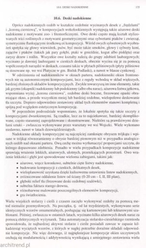 Szeroko i interesująco przedstawiona została przedstawiona geneza i rozwój form zdobniczych: drzwi, okien, szczytów, ganków i werand, ścian, okapów.