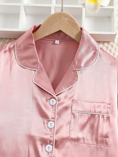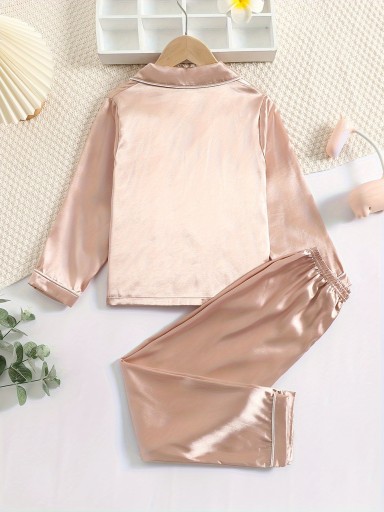 Атласный пижамный комплект для девочек, длинные рукава, на молнии.
