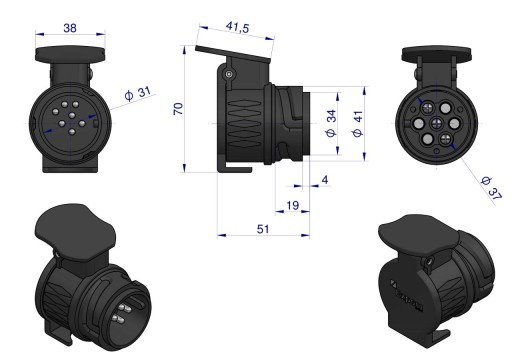 Adapter z 13-pin na 7-pin, czyli redukcja umożliwiająca podłączenie wiązki elektrycznej oświetlenia. Redukcja umożliwia bezinwazyjne podłączenie wtyczki 7 biegunowej z gniazdem 13 pinowym .