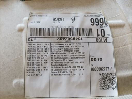 Opis: widoczne ślady użytkowani, zarysowania, zabrudzenia, lampki led schowek na okulary 5G0868837, rączki podsufitki 1x przód 3G0857607B, 2x tył 3G0857643B, osłona lusterka kamery 3G0868437, osłona słupków A prawy 3G0867234, lewy 3G0867233, osłona słupków B prawa 3G0868418, 3G0867292, lewa 3G0868417, 3G0867291, osłona słupków tylnych prawa 3G9867242, 3G9867246, lewa 3G9867241, 3G9867245, tylna lista podsufitki, 3G9867617, -jakość B && VW PASSAT B8 KOMBI PODSUFITKA OSŁONY LAMPKI RĄCZKI 3G0857551D