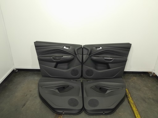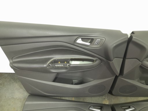Opis: fotele przednie regulowane manualnie, podgrzewane, tylna kanapa z podłokietnikiem, z uchwytem na kubki, kanapa z miejscem na uchwyty isofix, komplet boczków drzwi, tunel środkowy z podłokietnikiem gniazdem usb, 12v, miejscem na kubki, z przełacznikiami podgrzewania foteli przód, widoczne ślady użytkowania, zagięcia, -jakość B && FORD KUGA MK 2 FOTELE KANAPA KOMPLET BOCZKI TUNEL ŚRODKOWY PÓŁSKÓRA