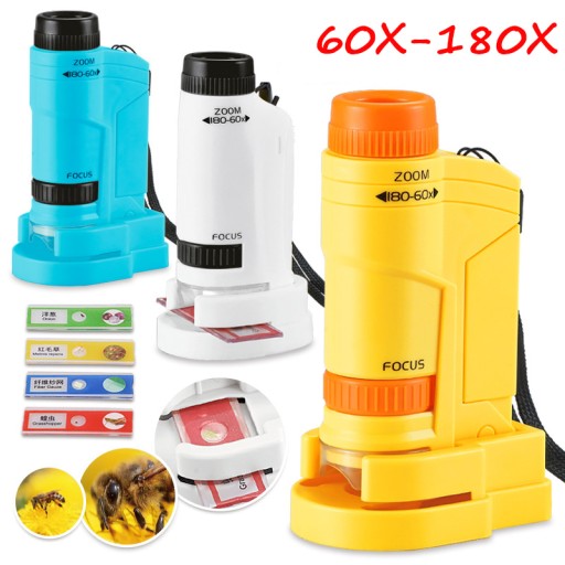 КАРМАННЫЙ МИКРОСКОП ПОРТАТИВНЫЙ ОБРАЗОВАТЕЛЬНЫЙ ПОДАРОК ДЛЯ ДЕТЕЙ 60x-180x LED
