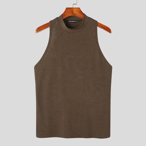2023 Men Tank Tops Solid Color Turtleneck Sleeveless Knitted Casual Vests Summer Streetwear Fashion Men Clothing INCERUN S-5XL
