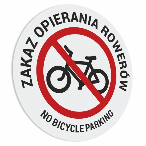 Naklejka "Zakaz Opierania Rowerów" drukowana i wycinana ploterowo na zamówienie z wysokiej jakości folii firmy ORACAL.