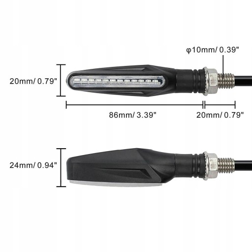 Bardzo ładny kształt oraz mocne diody LED (12 LED SMD 3528 SMD 12v) gwarantują długoletnie użytkowanie. Kierunkowskazy montowane na gwint M10 wyposażone w elastyczne ramię.