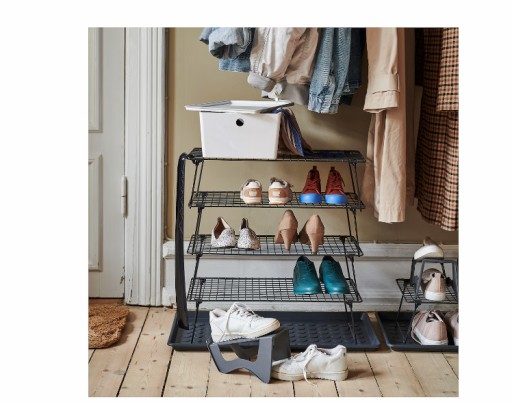 - Praktyczny schowek na buty, który pomaga zaoszczędzić miejsce w przedpokoju i szafie, ponieważ buty są ułożone jedne na drugim. Doskonały, gdy mieszka się na małej powierzchni.