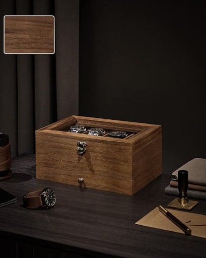 Rustykalny styl sprawia, że szkatułka na zegarki i biżuterię prezentuje się bardzo elegancko