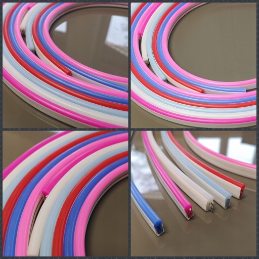 Neony typu FLEX są bardzo giętkie, dzięki czemu bardzo łatwo się wyginają, skręcają są bardzo elastyczne, dzięki czemu możemy z nich trwożyć przeróżne kształt.