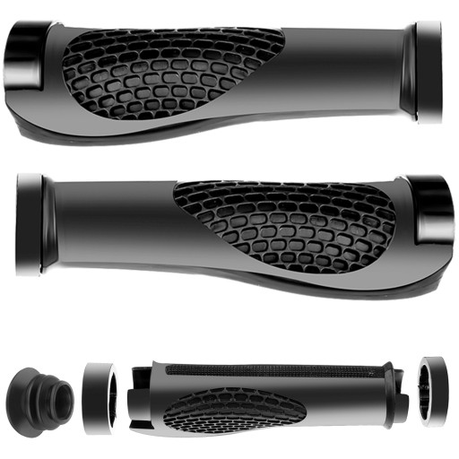 - ANTYPOŚLIZGOWE - aby jazda na rowerze była bezpieczna, rączki kierownicy zostały wykonane ze specjalnego antypoślizgowego materiału. Dodatkowe żłobienia zapewniają maksymalnie mocny chwyt oraz większą kontrolę nad kierownicą podczas jazdy zwłaszcza w ciężkim terenie.