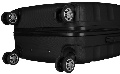 Walizka wyposażona w 4️⃣ podwójne, w pełni obrotowe (360°) kółka łożyskowe. Koła pozwalają na sprawne manewrowanie, a ich mechanizm zapewnia cichą pracę całego układu.