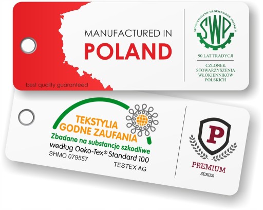 Materiał z serii PREMIUM posiada międzynarodowy certyfikat OEKO-TEX Standard 100