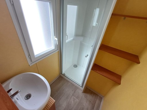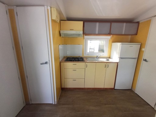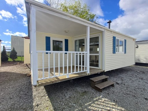 Domek CAŁORCZNY z tarasem, dach dwuspadowy kryty blachodachówką, podwójnie przeszklone okna, drzwi wejściowe przesuwne, salon połączony z jadalnią i aneksem kuchennym, płyta gazowa, zlewozmywak, lodówka, okap, 2 sypialnie wyposażone w łóżka i szafki, łazienka z prysznicem i umywalką, osobne wc, woda podgrzewana przez junkers gazowy.