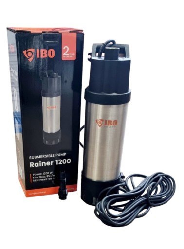 Pompa zatapialna Rainer 1200 marki IBO jest przeznaczona do wody czystej i zabrudzonej w małym stopniu (także chlorowanej). Pompa dedykowana jest do użytku w gospodarstwach domowych. Sprawdza się jako element systemu zagospodarowania wody deszczowej i systemów nawadniania. Można ją użytkować w roli zasilania gospodarstwa w wodę. Oprócz tego może być użyta do wypompowania wody z zalanego pomieszczenia. Nie jest przeznaczona do pompowania cieczy, które zawierają cząstki stałe (np. piasek).