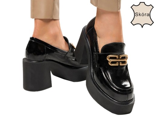 Czarne mokasyny skórzane damskie model 20170 zostały wyprodukowane w Polsce z najlepszych gatunków skór. Ręczne wykonanie butów gwarantuje doskonałą jakość i dopasowanie do stopy. Wnętrze obuwia zostało wytworzone z wysokiej jakości skóry, która zapewnia maksymalny komfort użytkowania. Te buty cechują się ponadczasowym fasonem z charakterystycznymi przeszyciami. Ich dodatkową cechą jest złota ozdoba umieszczona na cholewce, dodająca butom luksusowego i ekskluzywnego wyglądu. Miękka, skórzana wkładka zapewnia wyjątkowe uczucie przy każdym kontakcie ze stopą, pozwalając cieszyć się niezrównanym komfortem przez cały dzień. Szeroki obcas klocek gwarantuje stabilność i pewność każdego kroku, niezależnie od sytuacji. Dodatkowo, efektowna platforma dodaje charakteru i stylu, sprawiając, że stajesz się niezaprzeczalnie zauważalna w tłumie. To ponadczasowy i wszechstronny model obuwia, który można nosić zarówno z eleganckimi spódnicami lub sukienkami, jak i z jeansami. Mokasyny są popularnym wyborem na wieczorne wyjścia, imprezy lub inne okoliczności, gdzie ważny jest wyjątkowy i efektowny wygląd. Dzięki ich wygodzie i stylowej formie stanowią doskonałe połączenie modnego designu z funkcjonalnością. Nie czekaj dłużej, odkryj mokasyny, które staną się nieodłącznym elementem Twojej garderoby, dodając nutę luksusu i stylu do każdej stylizacji.